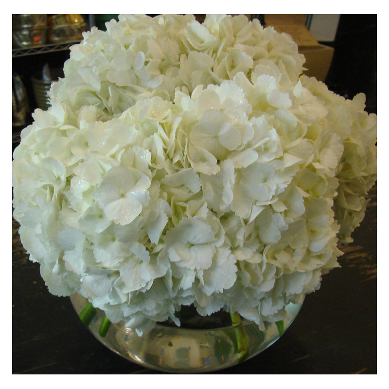 boule di vetro con ortensia bianca
