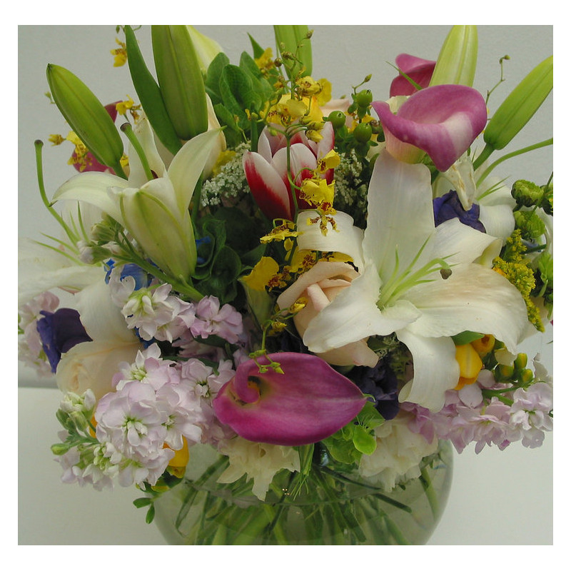 Bouquet fiori rosa & bianchi realizzato con Gerbere , Roselline , Lillium, e altro