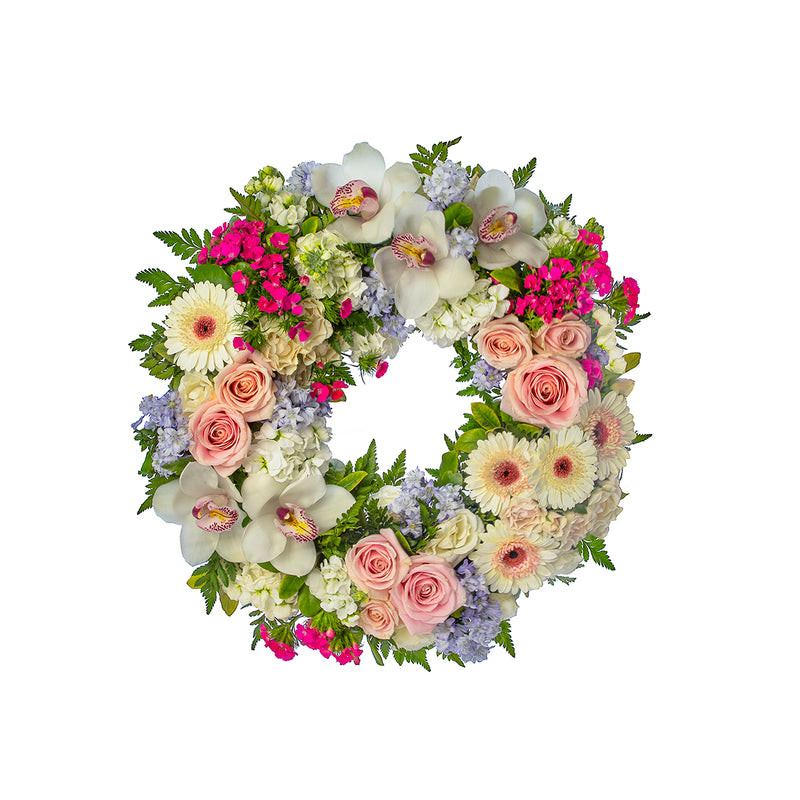 Composizione in cesto di lilium gialli, gerbere, garofani.