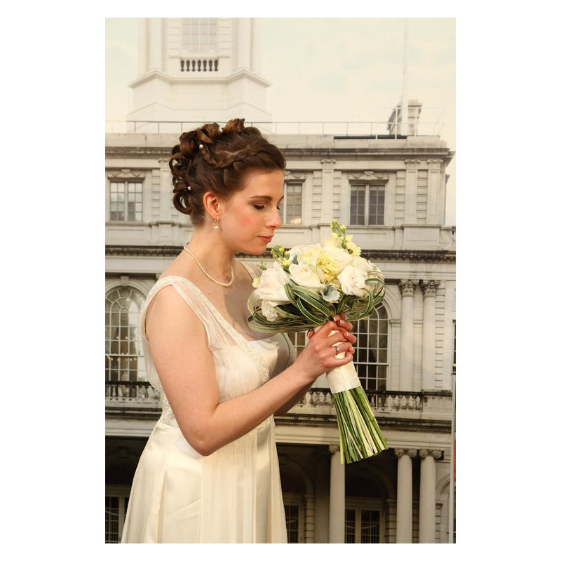 Bouquet con coda realizzato con fiori bianchi e panna assortiti