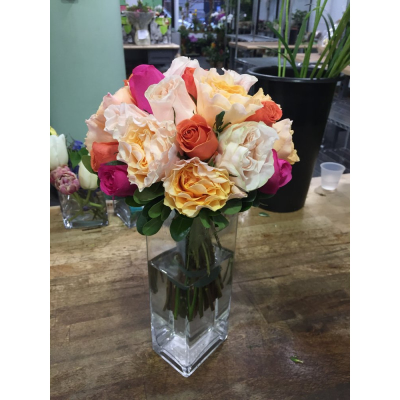 Bouquet da sposa configurato da rose di colori differenti con rose inglesi color pesca