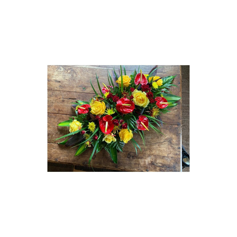 Cuscino funebre fiori gialli e rossi