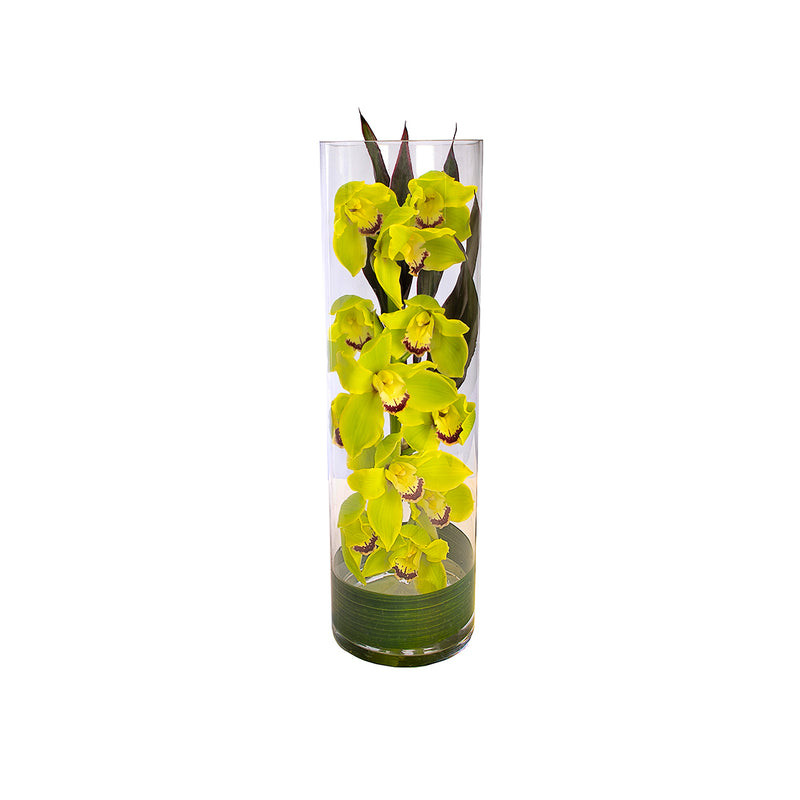 elegante tralcio di orchidea in vaso cilindrico di vetro trasparente