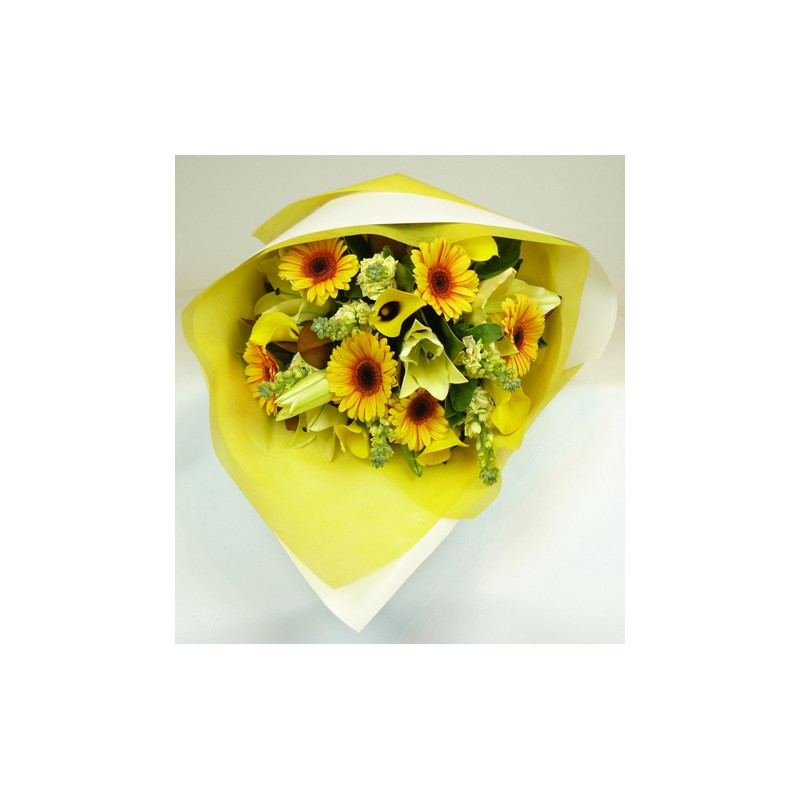 +3901119720423bouquet nelle nouances del giallo con gerbere, calle, lilium.