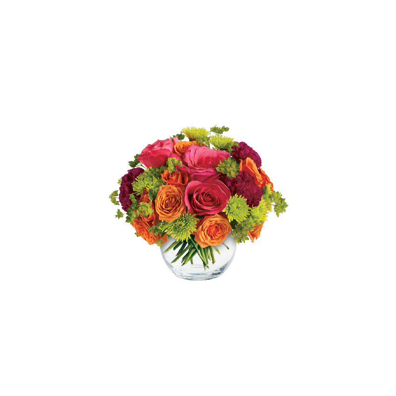 Bouquet rotondo con gambo allungato di zantedeschia arancio e aspidistre rivoltate